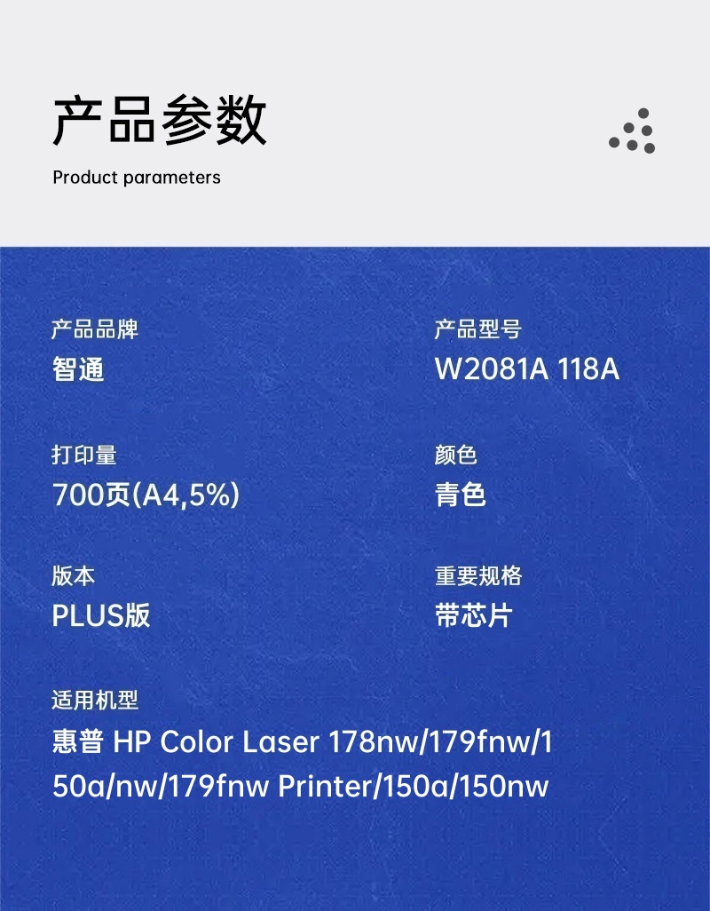 智通 W2081A 118A 粉盒 PLUS版 带芯片 青色 700页适用于惠普 HP Color Laser 178nw 179fnw 150a nw