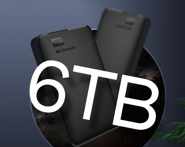 西部数据(WD)6TB 移动硬盘 USB3.0 元素系列 2.5英寸 机械硬盘 笔记本电脑外接 外置扩容备份 大容量家庭存储