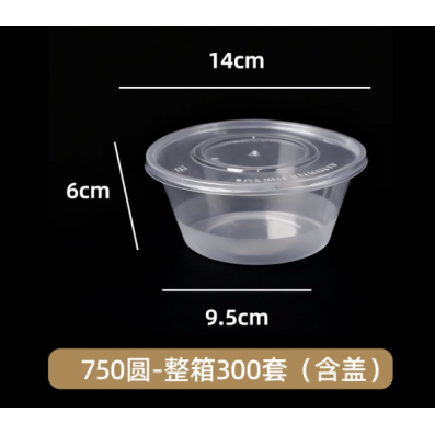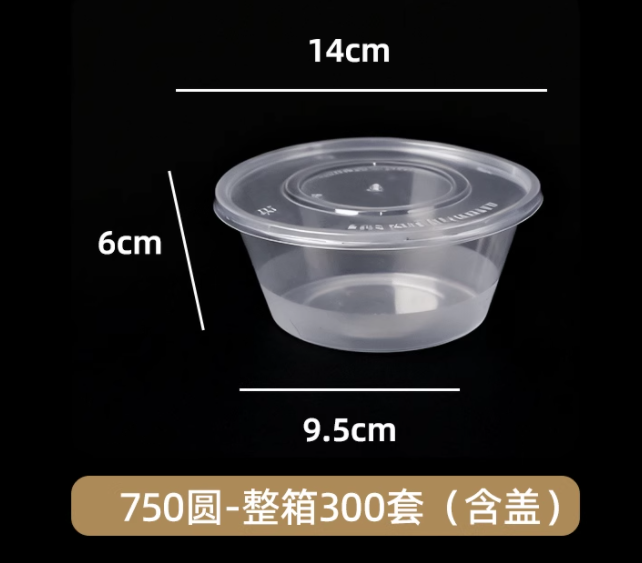食品用一次性带盖塑圆碗750ml 300套/件