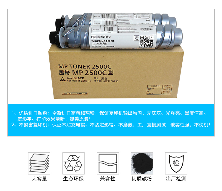科思特MP2500C粉盒 进口粉高清 适用理印机MP2500 MP2500LN Ricoh 碳墨粉筒(1支装) 默认颜色