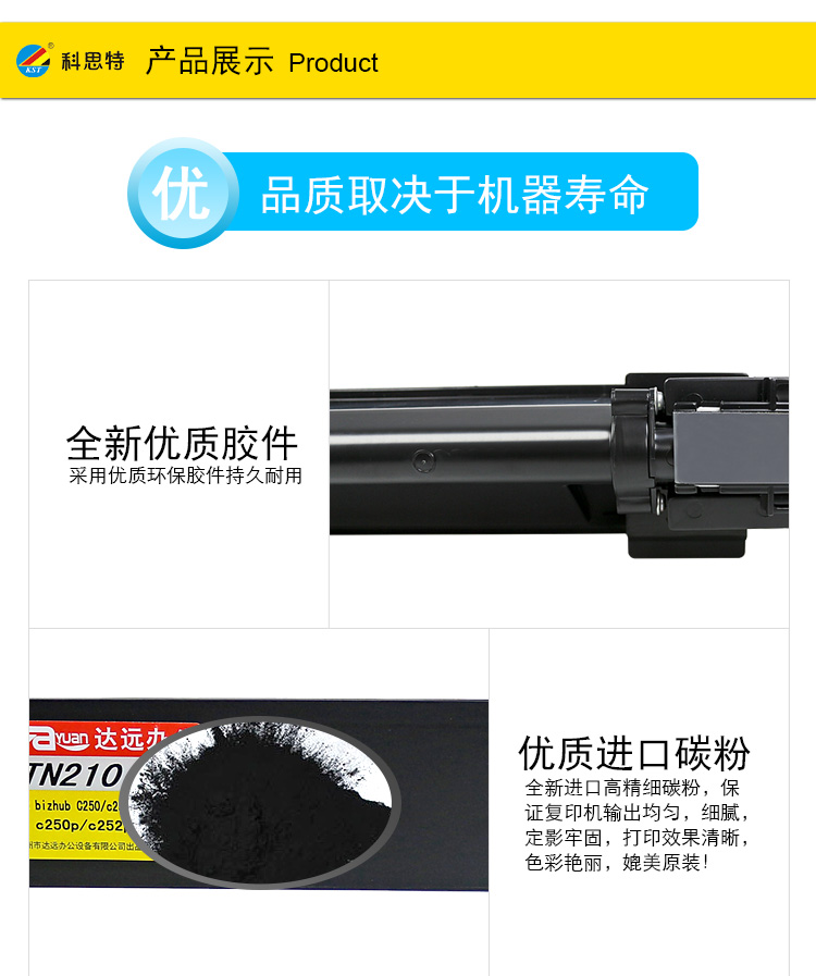 科思特TN210碳墨彩色粉盒 适用柯尼卡美能达C250 C252 C250p C252p 黑色BK