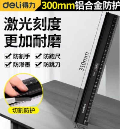 得力(deli) 铝合金防护尺钢尺30cm DL8230 单位:个