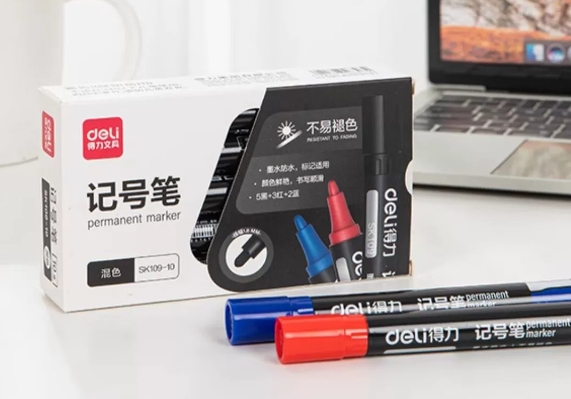 得力 会议笔学习标记笔黑色10支/盒SK109黑色 单位:盒