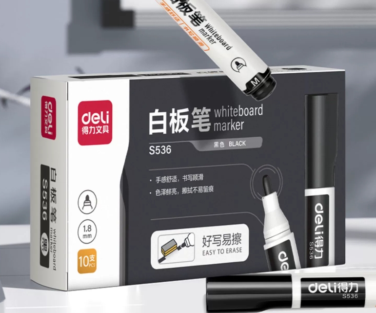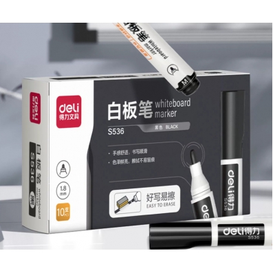 得力(deli)黑色白板笔 可擦易擦书写顺滑 10支/盒 S536 单位:盒