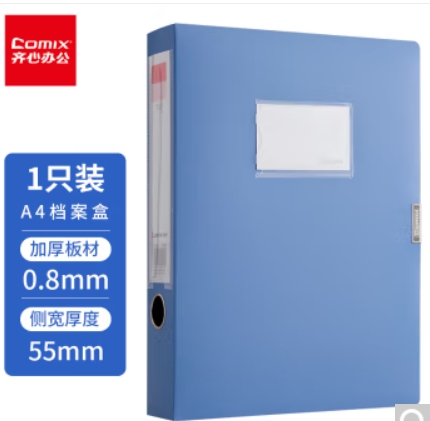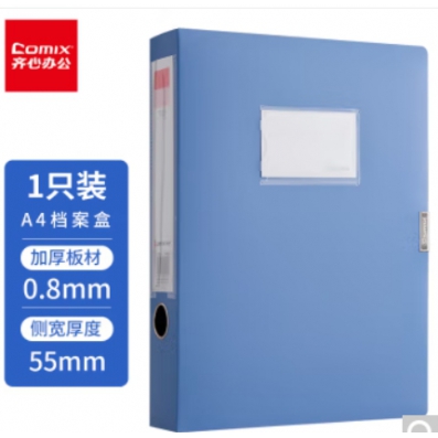齐心(Comix) A4 55mm粘扣档案盒/文件盒/ 蓝色 A1249 单位:个