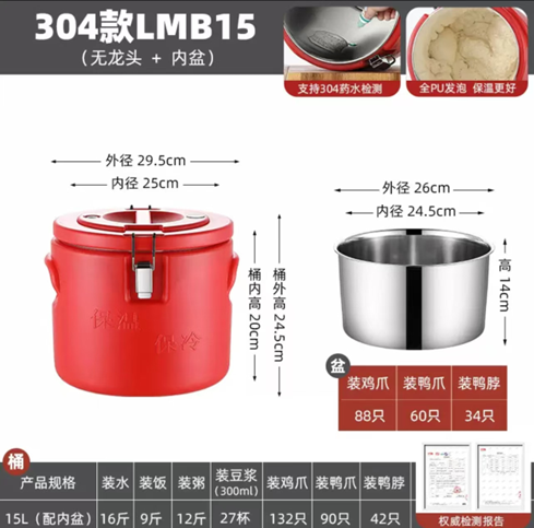 莲梅LMB15不锈钢保温桶(红色)15L
