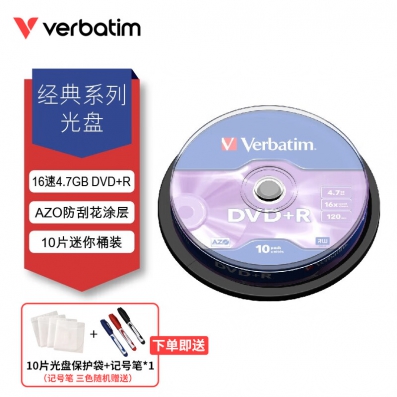 威宝Verbatim 16X DVD-R 4.7GB刻录光盘10片桶装
