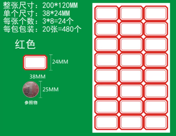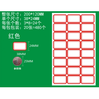 口取不干胶标签贴纸红色3*8