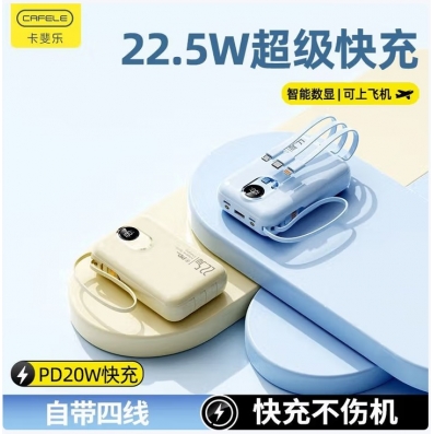 卡斐乐(Cafele)20000毫安充电宝22.5W快充大容量便捷移动电源蓝【22.5W双向闪充PD20W】自带线