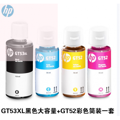 惠普 GT53/GT52原装墨水 适用惠普310/5810/5820/418/419/518/519 53XL+52四色墨水简装