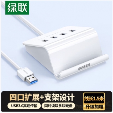 绿联USB扩展器3.0扩展坞 4口HUB转换器 带供电口