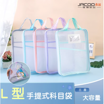 杰出JC14456手提式透明L型拉链文件袋