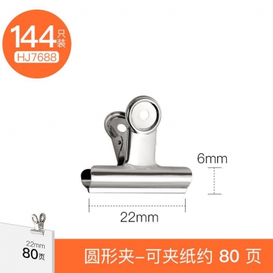 华杰票夹文具大夹子铁票据夹不易生锈大中小号学生文件报纸夹山形圆形铁票夹蝴蝶财务用试卷办公素描画板夹 22mm圆形夹【144个装】HJ7688