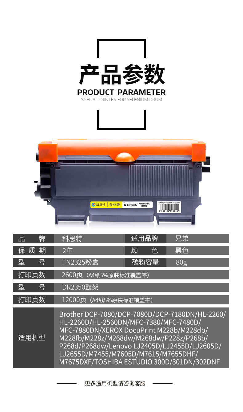 科思特 TN-2325粉盒 适用兄弟 HL2260 DCP7080 7480D MFC7380 7880 7180 施乐P228 M228b/db/fb/z 专业版