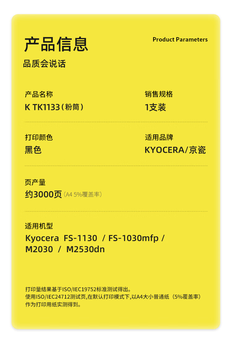 科思特 K TK1133 粉筒 黑色(适用京瓷Kyocera FS-1130/FS-1030mfp/M2030/M2530dn)打印量3000页 专业版