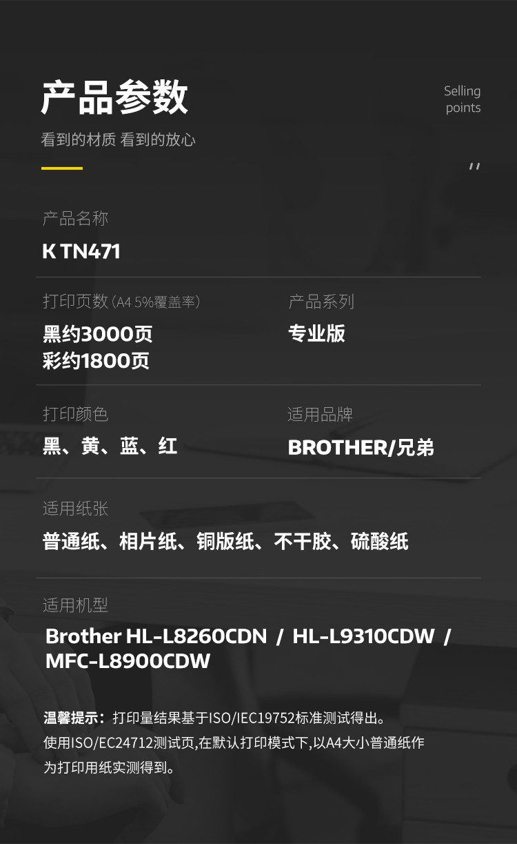 科思特 K TN471粉盒 适用兄弟硒鼓 L8260CDN L9310CDW L8900CDW TN471粉盒 黄色 1800页 专业版