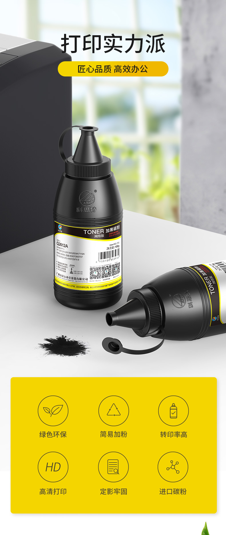 科思特Q2612A碳粉 适用惠普打印机墨粉 12A M1005 1020 CF280A 佳能FX-9 120g(2500页)1支 加黑粉 专业版