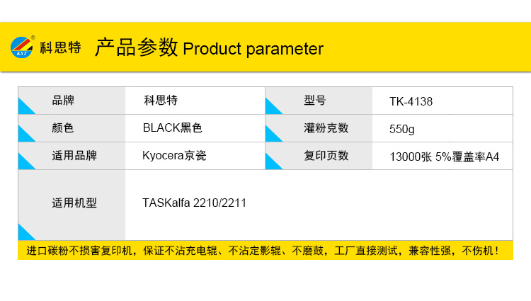 科思特TK-4138粉盒 大容量高清 适用京瓷复印机 TASKalfa 2210 2211 碳墨粉盒 默认颜色