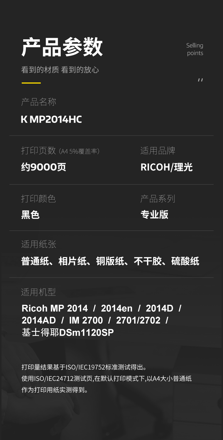 科思特K MP 2014C 粉盒适用理光MP 2014/2014en/2014D/2014AD基士得耶DSC1120SP MP2014C小容量专业版