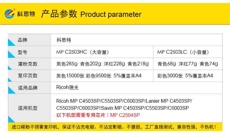 科思特 MPC2503碳墨粉盒 适用理光C2003SP C2011SP C2503SP 2504SP MPC2503LC黄色Y(小容量)