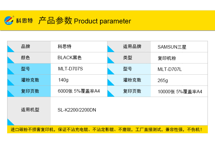 科思特MLT-D707L粉盒 适用三星复印机 SL-K2200 2200DN 碳墨盒 D707S(小容量)