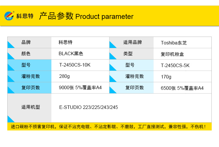 科思特T-2450CS-10K粉盒 高清 适用东芝复印机E-STUDIO 223 225 243 245 黑色 碳墨粉盒 T-2450CS-10K大容量