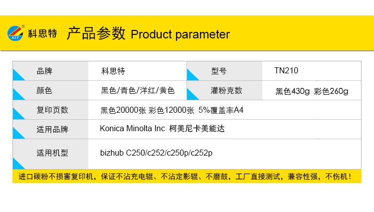 科思特TN210碳墨彩色粉盒 适用柯尼卡美能达C250 C252 C250p C252p 黑色BK
