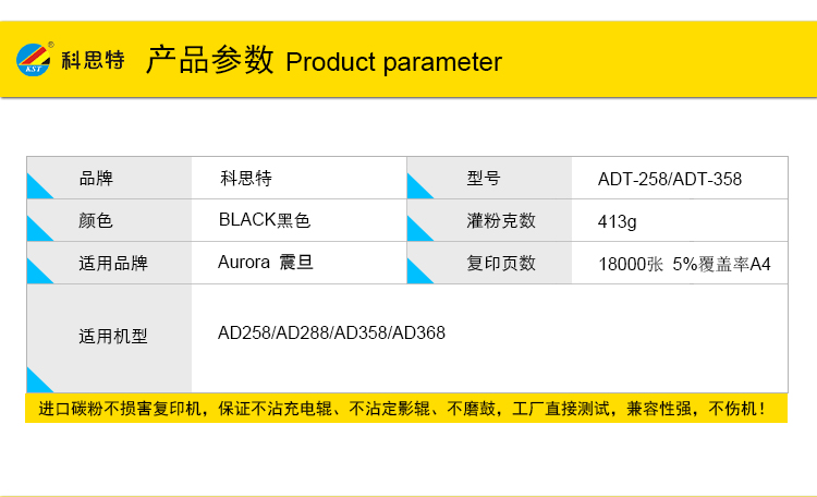 科思特ADT-258粉盒 进口粉高清 适用震旦复印机 AD258 AD288 AD358 AD368 ADT-358碳墨 默认颜色
