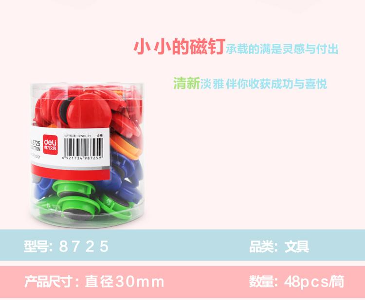 得力(deli)彩色白板磁钉磁铁黑板吸铁石/磁铁φ30mm 48粒/筒白板配件 配合白板笔白板擦使用8725