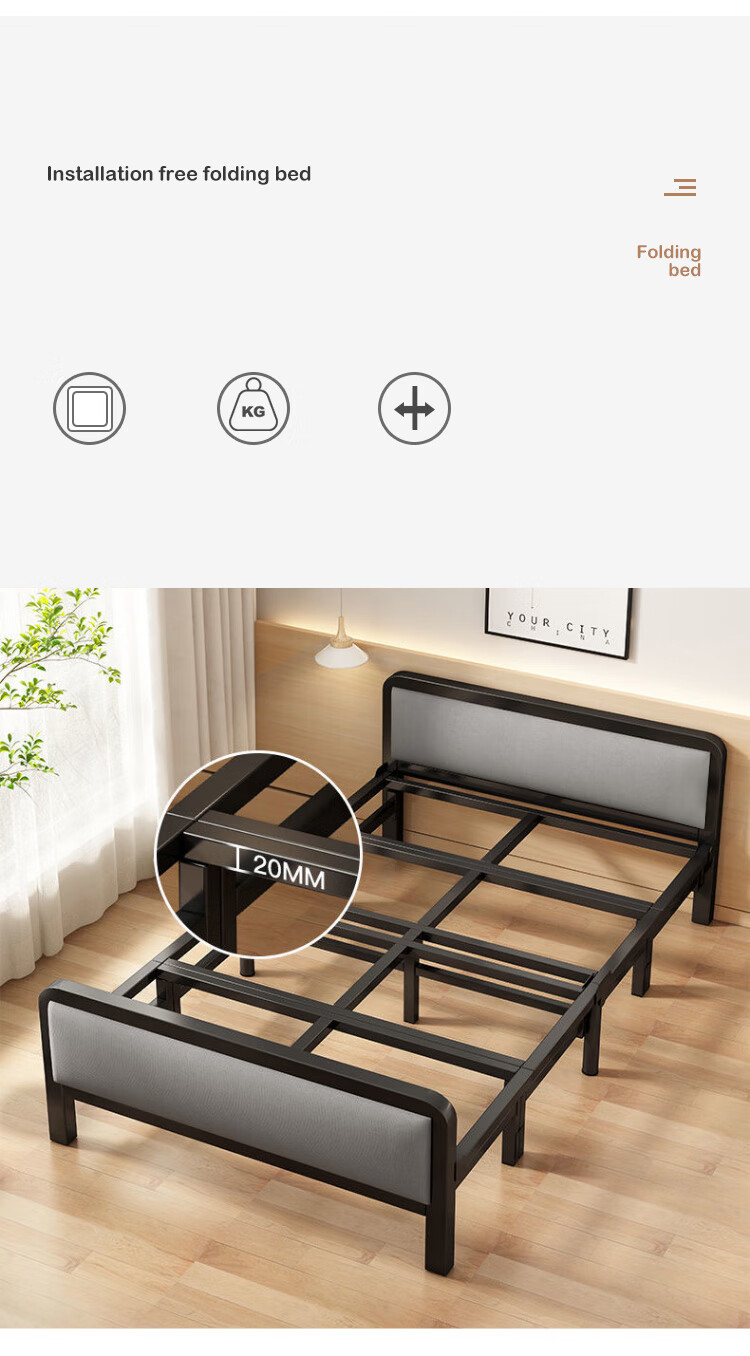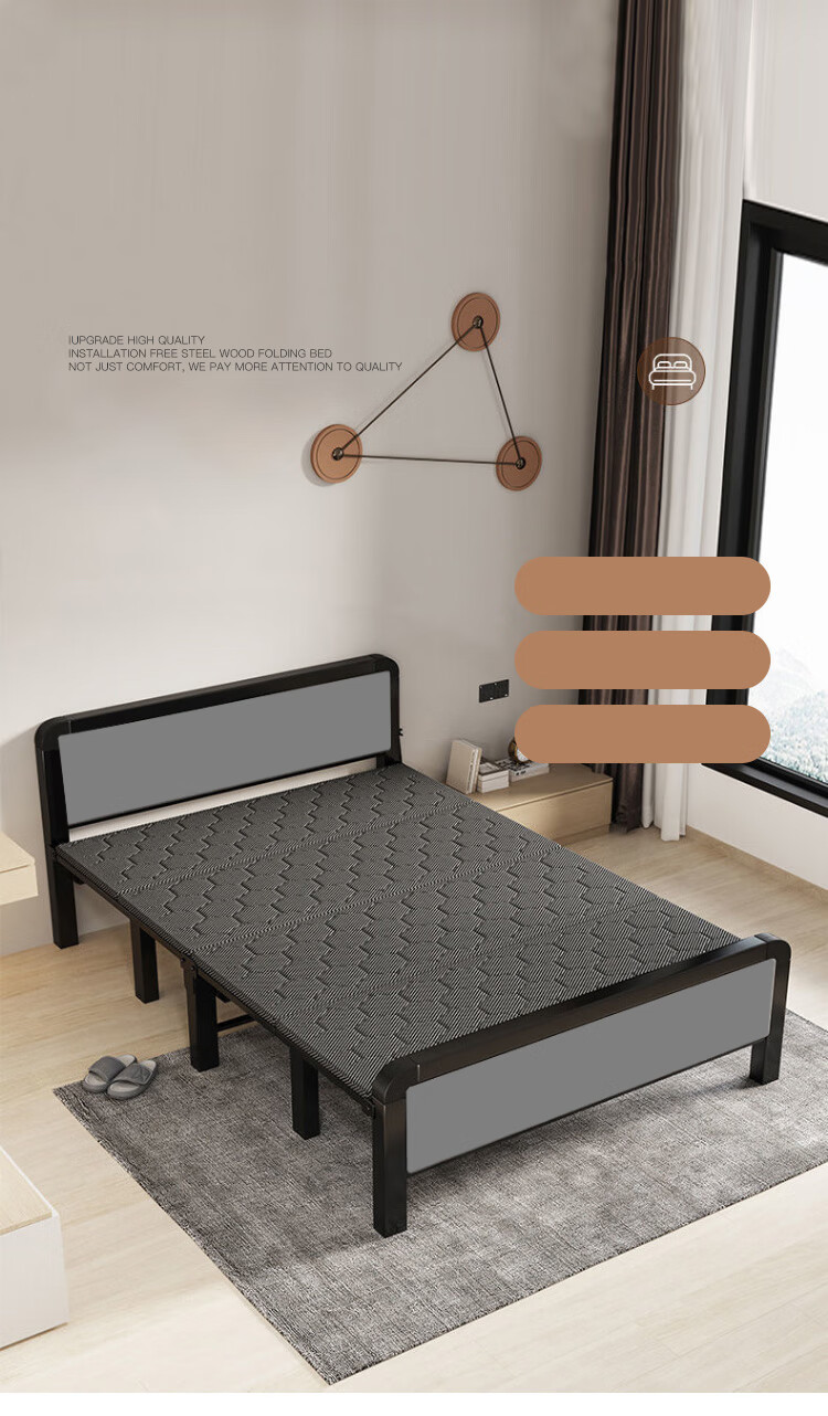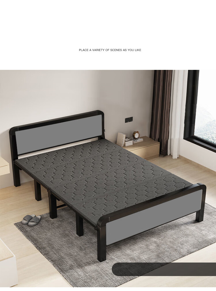 L&S折叠床单人床办公室午睡床家用双人医院陪护折叠铁艺床四折免安装 BGC815 120CM