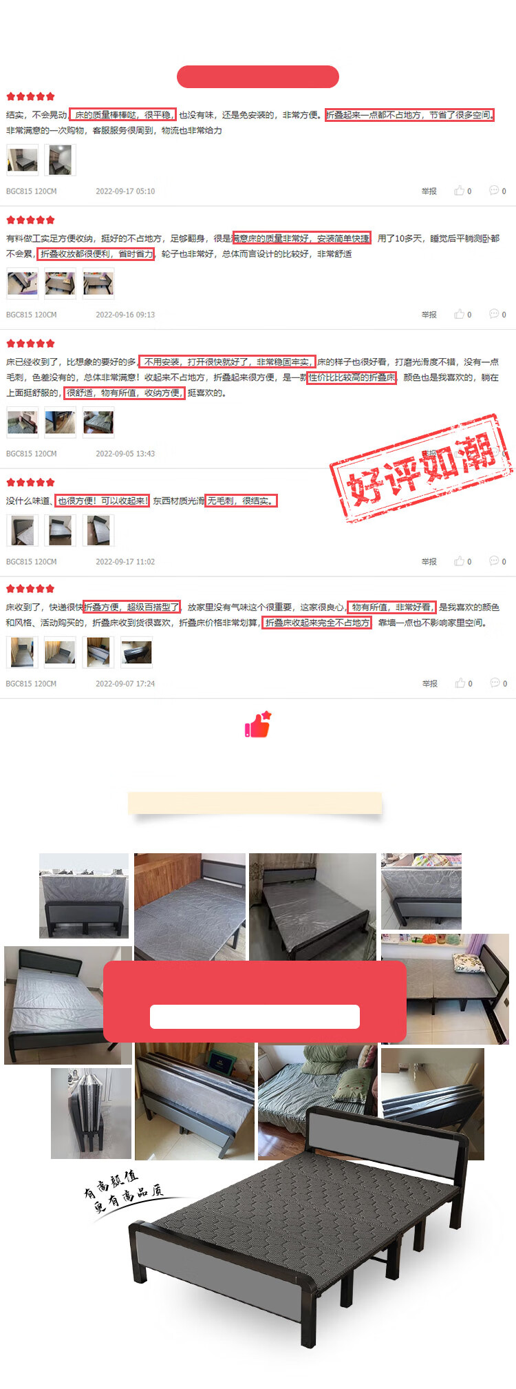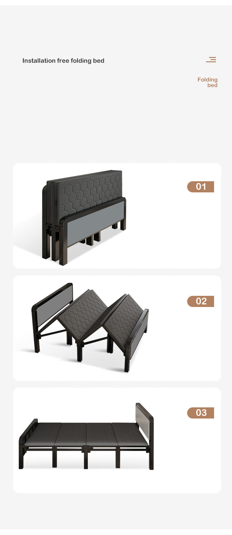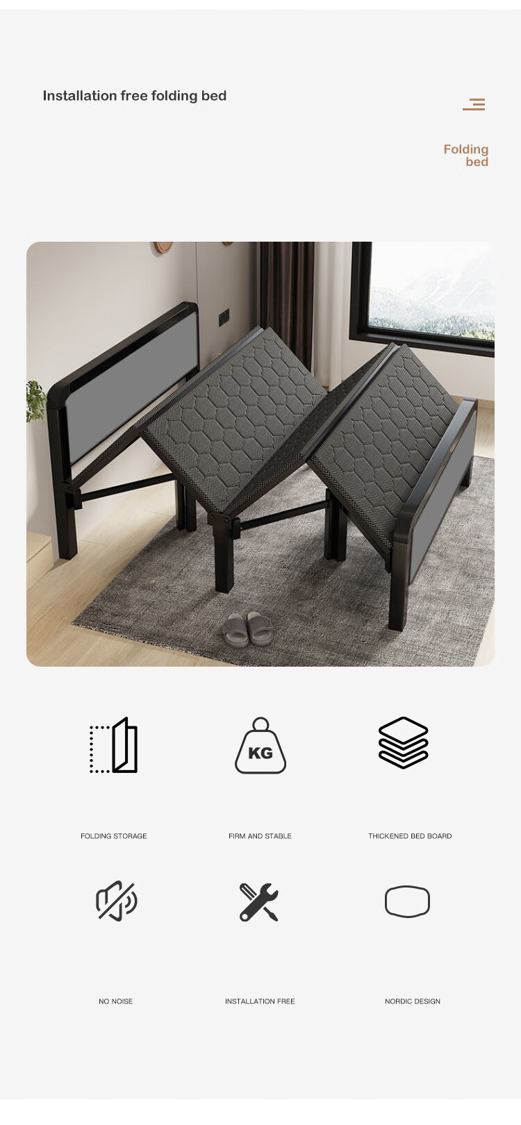L&S折叠床单人床办公室午睡床家用双人医院陪护折叠铁艺床四折免安装 BGC815 120CM